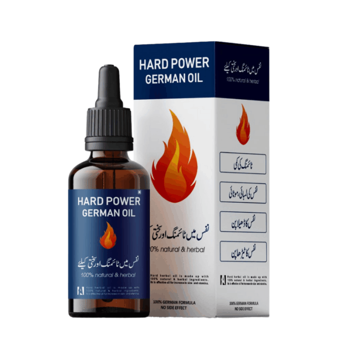 Hard Power German Oil produces full strength by removing male impotence. By increasing the size of the soul without getting rid of smallness, it creates timing and stress in the male soul without any side effect. Excessive timing and full stiffness and increase in thickness Hard power German oil Hut deficiency and erectile dysfunction by removing the length of the penis Weakness due to diabetes Also remove completely.